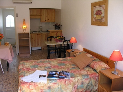 A típusú apartman (25 m2): egyszobás, hegyekre néző, 2 felnőtt és 1 gyermek részére, franciaágy és fotelágy, nappali kinyitható ággyal, légkondicionáló, műholdas televízió, felszerelt konyharész, mikró, fürdőszoba, terasz vagy erkély kerti bútorokkal.