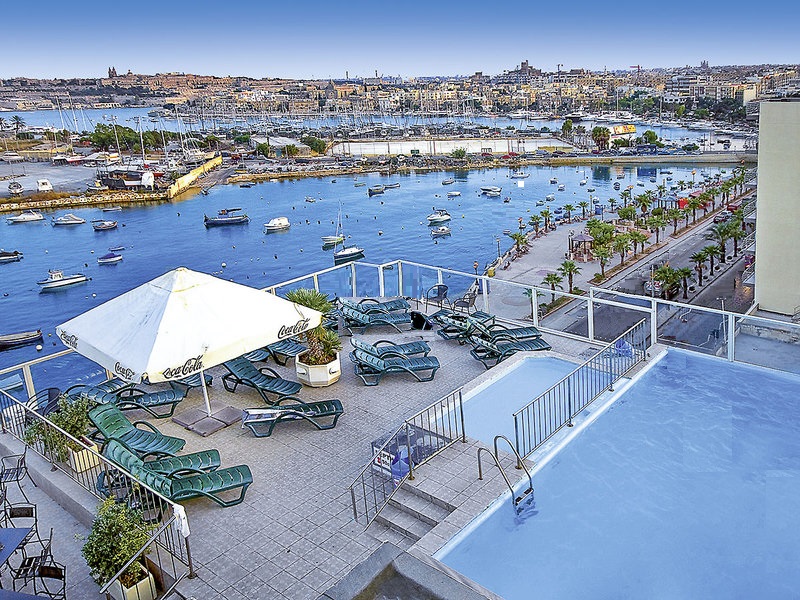 Fekvése: a 3 csillagos szállodát csak a parti út választja el a szép sétánytól, Sliema város kikötőjére néz. A sziklás strand 1 km-re, a nyüzsgő központtól 500 méterre fekszik. A szálloda főépületében a standard szobák, a 300 méterre lévő melléképületekben a stúdiók és apartmanok találhatók. A hotel közvetlen közelében számtalan étterem, bár, üzlet található. Menetrendszerinti buszmegálló a hotel előtt, buszjáratok Vallettába és a sziget többi üdülőhelyére. A Vallettába közlekedő hajó kikötője 5 perces sétával elérhető. A busztranszfer a repülőtérről 35 perc.