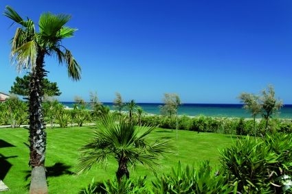 D típusú apartman (55 m²): háromszobás, 4-6 fő részére, 2 hálószoba, hegyekre vagy kertre vagy oldalról tengerre néző, nappali kihúzható ággyal, műholdas televízió, széf, felszerelt konyhasarokkal, fürdőszoba, erkély kerti bútorokkal. Barbecue bérelhető (10.-euro/hét).