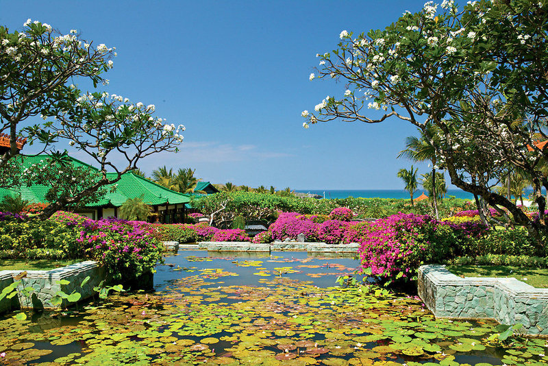Fekvése: az 5 csillagos luxusszálloda gyönyörű tengerparttal rendelkezik, Nusa Dua hosszú, homokos tengerpartján, 40 hektáros területen található. A hotelt trópikus kertek, lagúnák és vízesések veszik körül. A repülőtér 12 km távolságra.