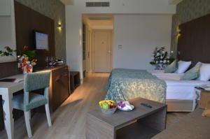 Standard szoba: 32 nm - 2-3 ágyas szobákhoz Légkondicionáló, műholdas televízió, telefon, széf, minibár, fürdőszoba hajszárító, balkon tartozik. Lehetőség 2 felnőtt+2 gyermek elhelyezésére is.