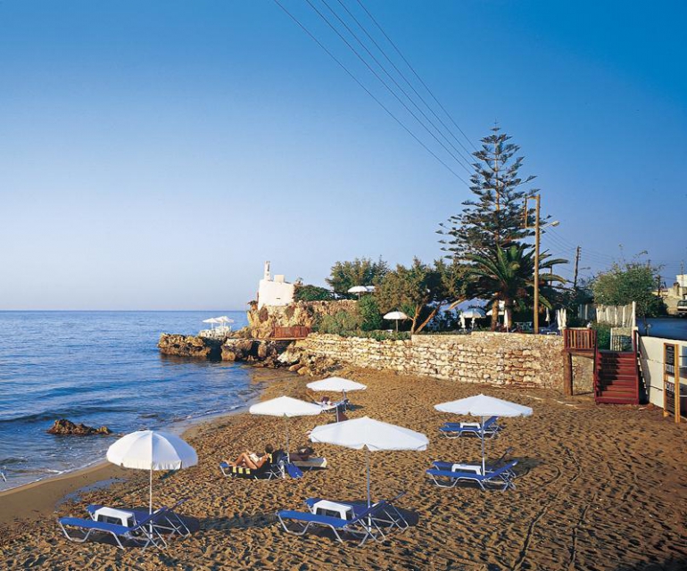 Fekvése: a 4 csillagos szállodát csak a parti út választja el a homokos-kavicsos tengerparttól. A strand a jó vízminőség alapján Kék Zászló díjjal kitüntetett. A hotel 1 főépületből és több melléképületből áll. Kellemes légkörű szálloda kiváló szolgáltatásokkal és szépen gondozott, kis kerttel.A közelben tavernák, kávézók, üzletek. Menetrendszerinti buszmegálló 150 méter, Rethymno központja 2 km távolságra, ahol éttermek, bárok, bevásárlási és szórakozási lehetőségek várják az ideérkező vendégeket. Heraklion repülőtér 72 km-re fekszik.