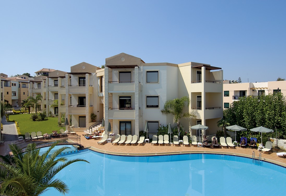 Fekvése: a 3 csillagos szálloda a homokos tengerparttól 50-200 méterre fekszik, az egyes épületek elhelyezkedésétől függően. A hotel 7 db 2 emeletes épületből áll. Georgioupolis központja 2 perc gyalog, a kikötő 300 méterre található. Chania repülőterér 60 perc távolságra.