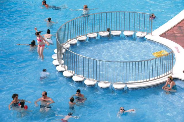 Felszereltség: társalgó műholdas televízióval, a kertben édesvizű úszómedence poolbárral, ingyenes napágyakkal és napernyőkkel, gyermekmedence, fedett medence és szauna, mélygarász (térítés ellenében (kb. 15 euro.-/nap), étterem, bárok, kávézó, diszkó, és ingyenes Wifi internetezési lehetőség és internetsarok.