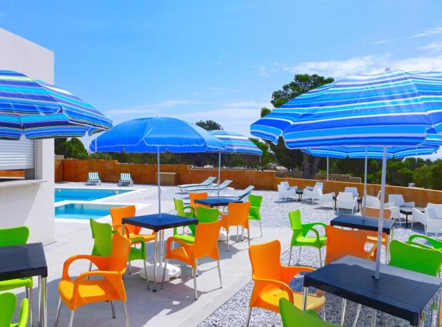 Felszereltség: recepció, lift, terasz, tévé -szoba, a kertben úszómedence, gyermekmedence, pool-bár, napozószékek és napernyők, étterem, bár, internetsarok, a közös helyiségekben ingyenes Wifi internetezési lehetőség.