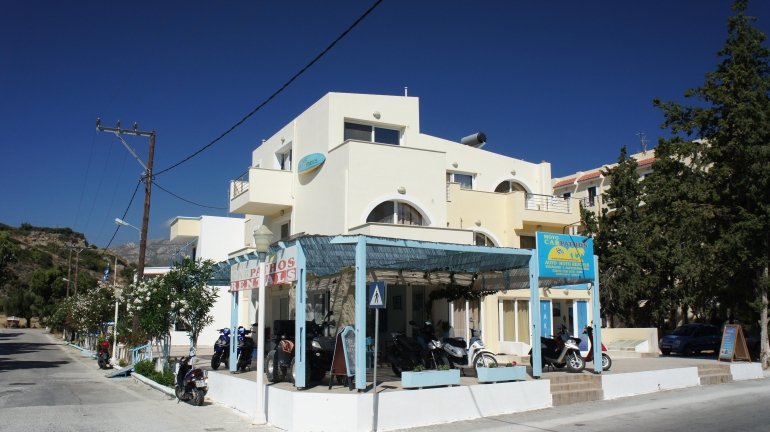 Fekvése: a modern apartmanház a homokos tengerparttól 80 méterre fekszik, Pigadia üdülőhelyen, a főút mellett helyezkedik el. A 2 szintes apartman a központtól 1,2 km-re található. A vendégeket taverna, bár, kávézó, minimarket, motorkölcsönző várja az apartmanház közelében.