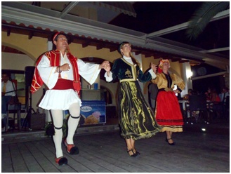 A görögséghez hagyományosan hozzátartozik a népi tánc, a népdaléneklés és a hosszan elnyúló étkezések sora. A görögök szenvedélyesen szeretnek táncolni, a ritmus a vérükben van. Ezen az estén egy vacsora keretében, korlátlan bor (vörös, fehér) fogyasztás mellett, a tipikus karpathoszi és krétai táncokkal ismerkedhetünk meg egy kiváló táncegyüttes előadásában, élő zene kíséretében, valamint elsajátíthatjuk a Syrtaki és Pano Choro alaplépéseit.