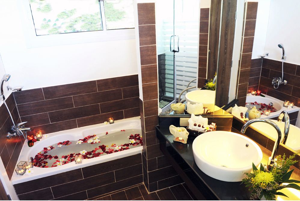 Deluxe villa - 35 nm - 2-3 ágyas szobákhoz légkondicionáló, televízió, telefon, széf, fürdőszoba, kertre néző terasz tartozik.