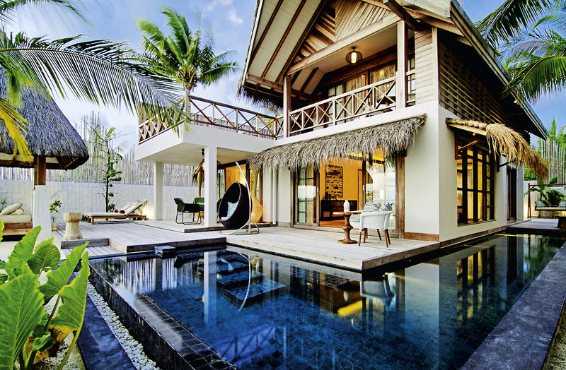 Beach villa: tengerre nézők, fürdőszobával, kabinos zuhanyzóval, kinti zuhannyal, fürdőköntössel, hajszárítóval, szatelit tv-vel, telefonnal, internettel, széffel, minibárral, klímával rendelkezik. Medencével, terasszal, saját boros pincével, öltözőszobával, nyugágyakkal rendelkezik.