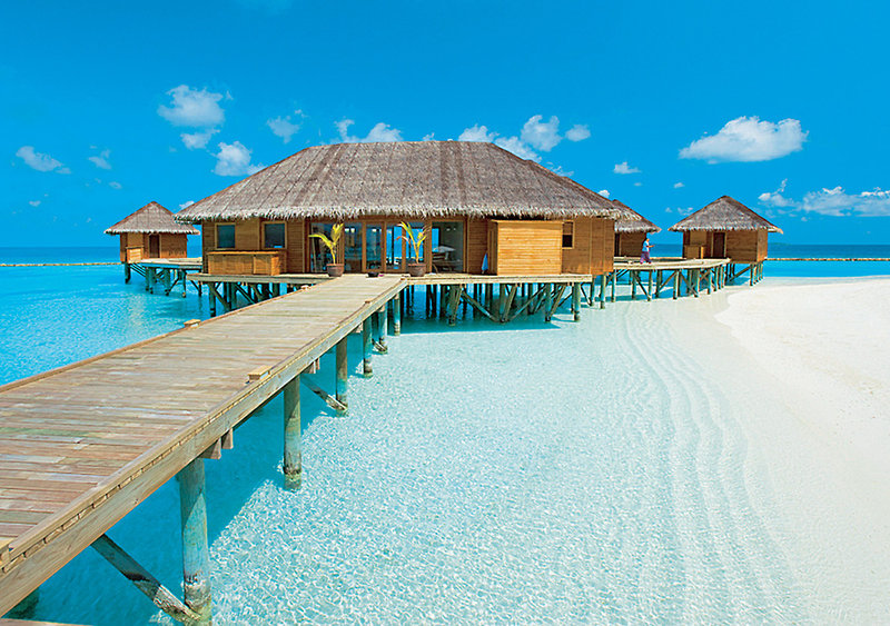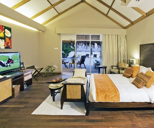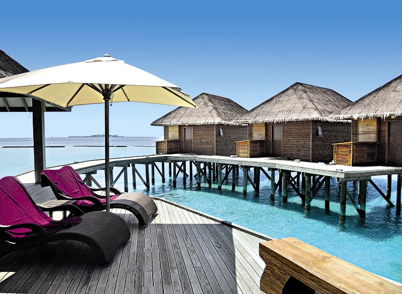 Vízi bungaló: cölöpökre épült, zárt fürdőszoba szabadon álló káddal és külön zuhanyzóval, fürdőköpeny, gardrób, vasaló DVD lejátszó, nagy terasz, kerti zuhany, napozóágyak és közvetlen hozzáférést biztosít a tengerre.
