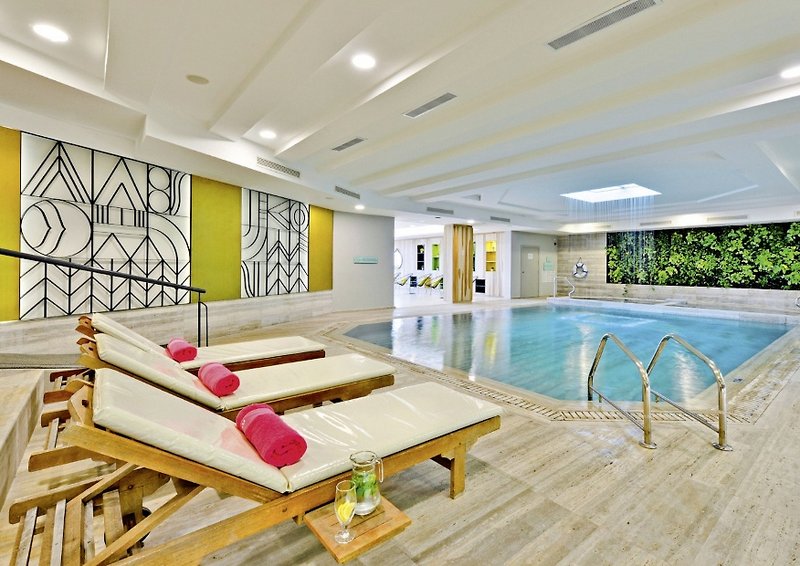 Felszereltség: recepció, liftek, lobby, tévésarok, édesvizű úszómedence, gyermekmedence, napernyők, napozóágyak, strandtörölközők a medencénél ingyenesen vehetők igénybe, büféétterem, a'la carte étkezés térítés ellenében), bár, wellness központ, fedett medence (fűthető), szauna, jacuzzi, gőzfürdő, masszázs (külön kérésre), fodrászat, manikűr, pedikűr valamint különböző arc és testkezelések, ingyenes Wifi internetezési lehetőség a hallban.