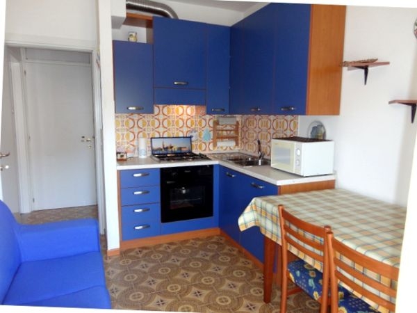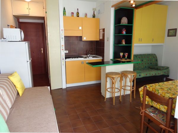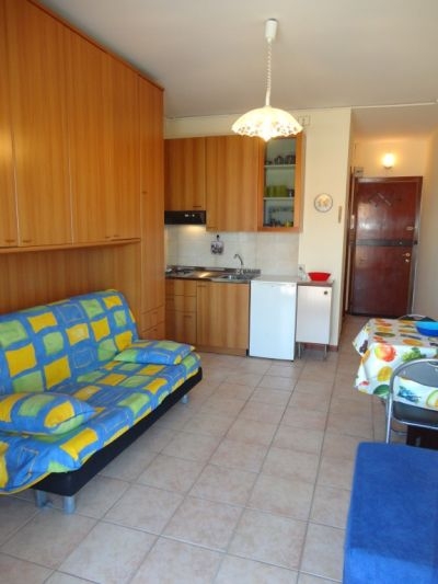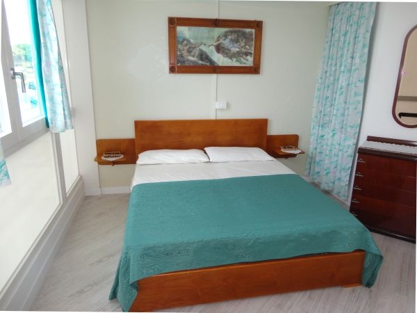 4 fős apartman (A): 1 légterű, nappali 2 kétszemélyes kanapéval, konyhasarok, fürdőszoba, zuhanyfülke, WC, bidet, erkély kilátással a Corso Venezia-ra és a tengerre. 5. emeleti, televízióval, mosógéppel, mosogatógéppel és széffel felszerelt.