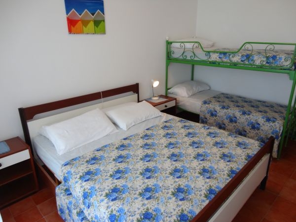 6 fős apartman (C): 3 légterű, hálószoba franciaággyal, hálószoba egyszemélyes ággyal és emeletes ággyal, nappali dívánnyal, konyhasarok, saját fürdőszoba, zuhanyzó, WC, bidet, tágas terasz. Televízióval és mosógéppel felszerelt.