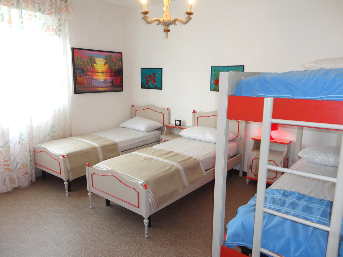 6 fős apartman: 3 légterű, hálószoba franciaággyal, hálószoba emeletes ággyal, nappali kétszemélyes dívánnyal, fürdőszoba, kád vagy zuhanyzó, WC, bidet, terasz szép kilátással. Televízióval felszerelt.