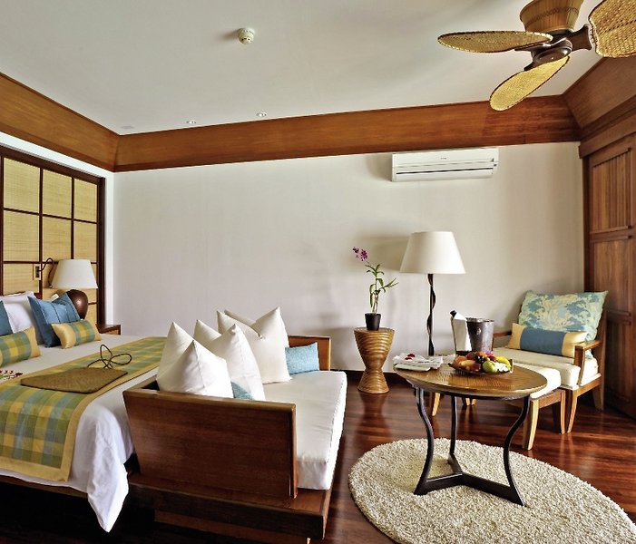 Villa: légkondicionált villák a homokos tengerparton vagy a kristálykék lagúna felett találhatók. Minden villához tartozik síkképernyős TV, DVD-lejátszó és iPod-dokkoló. A félig nyitott fürdőszoba káddal és melegvizes zuhannyal rendelkezik.