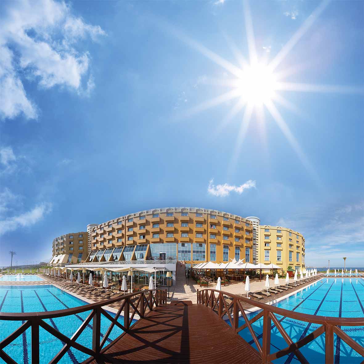 Felszereltség: recepció, lift, úszómedence, gyermekmedence, medencebár, napozóterasz, napernyők, napozóágyak, strandtörölköző szerviz, wellness központ, szauna, gőzfürdő, törökfürdő, masszázs, fodrászat, több étterem (steak, a’la carte, hal, grill stb.), angol pub, bár, internet kávézó, tengerparti bár, szobaszerviz, ajándéküzlet, ékszerbolt, fényképész, rendezvényszervezés, ingyenes wifi internet a szálloda területén, pénzváltó, autóbérlés, parkoló.