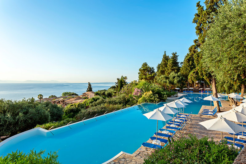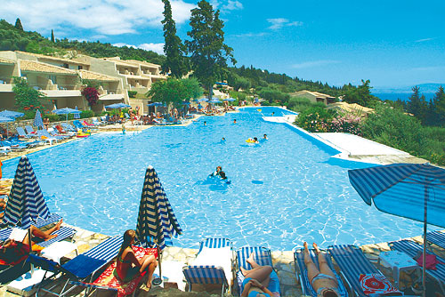 Fekvése: a 4 csillagos szálloda a tengerparttól 50 méterre, a parti sétány felett fekszik, hatalmas területen, gyönyörű kerttel övezve, Perama üdülőhelyen, a központtól 400 méterre helyezkedik el. A kitünő fekvésű hotel főépületből és több bungalóépületből áll, a homokos-aprókavicsos tengerpart egy aluljárón keresztül érhető el. Sissi Palota 1,5 km, Benitses 3 km, Korfu repülőtér 8 km, Korfu városa 10 km távolságra.