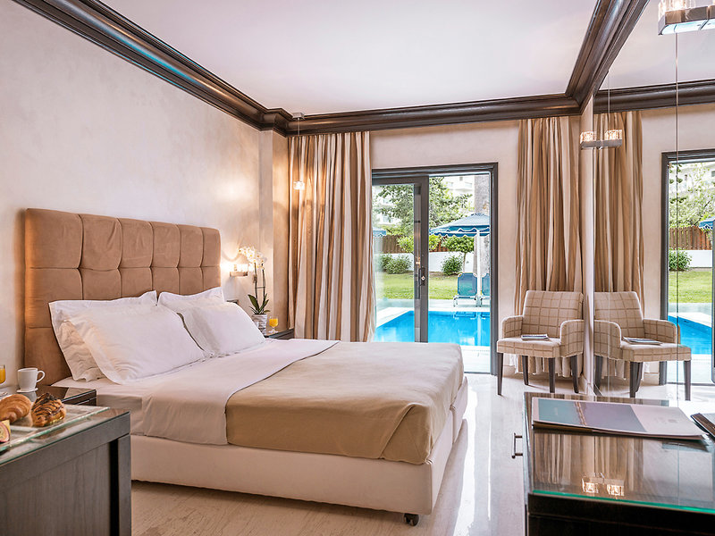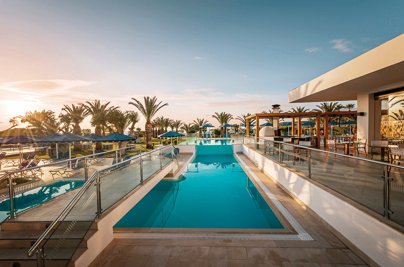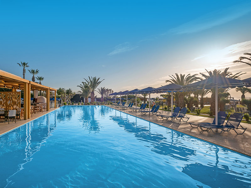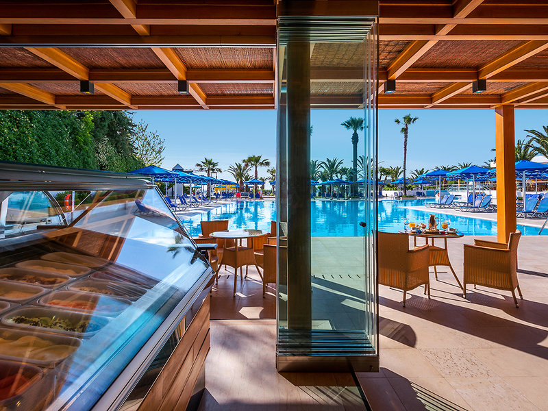 Felszereltség: 24 órás recepció, lift, lobby, tévésarok, konferenciatermek, édesvizű úszómedence, gyermekmedence, medencebár, a napozóteraszon a napernyők, napozóágyak ingyenesen vehetők igénybe, a tengerparton térítés ellenében, étterem, a la carte taverna (olasz és görög specialítások), bár, parti bár, fodrászat, mosoda, gyermekfelügyelet, orvosi szolgálat, szupermarket, ajándéküzlet, ékszerbolt, internetezési lehetőség, pénzváltó, autóbérlés, parkoló.