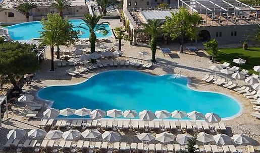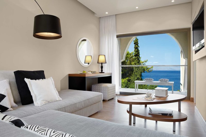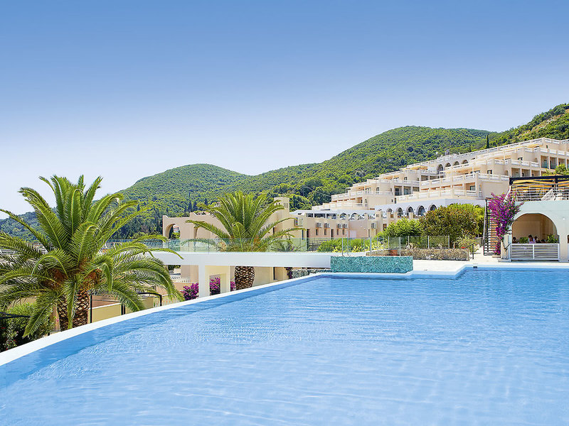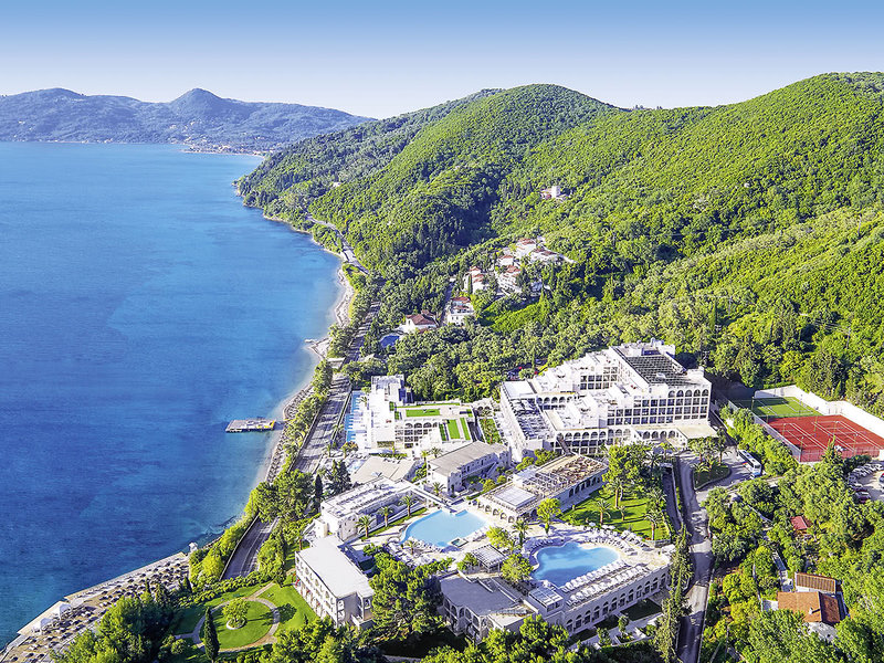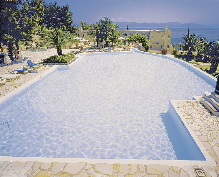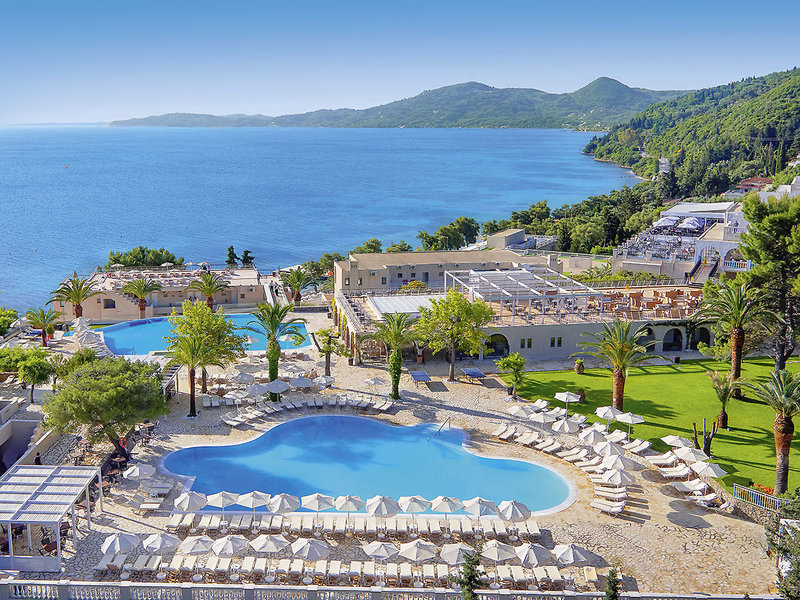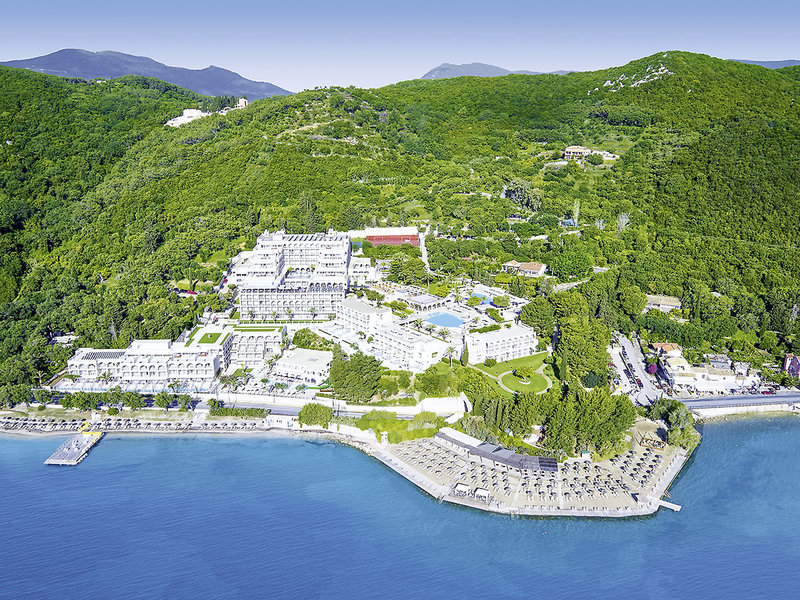 Fekvése: a mediterrán stílusban épült, elegáns 5 csillagos szálloda a homokos-kavicsos tengerpart felett egy dolmboldalon, Agios Ioannis üdülőhelyen, gyönyörű kertben, nyugodt környezetben, a központtól 400 méterre helyezkedik el. A teraszosan épült hotel 1 főépületből és 5 bungalóépületből áll. A strand egy lépcsősoron keresztül közelíthető meg. Menetrendszerinti buszmegállója a hotel előtt, Moraitika 3 km, a repülőtér 14 km, Korfu város 15 km távolságra. A strand minden évben elnyeri a „Kék Zászló" díjat a víz tisztasága miatt.