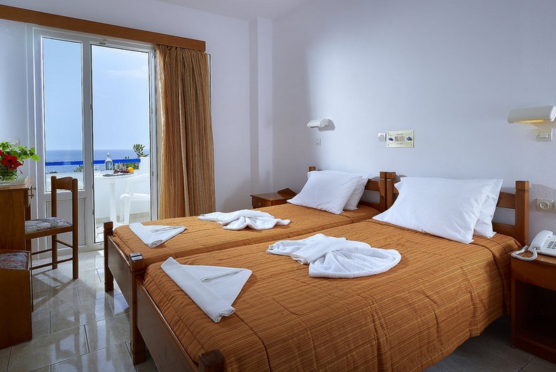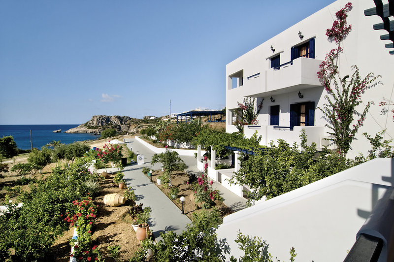 Fekvése: a 3 csillagos szálloda közvetlenül az aprókavicsos-homokos tengerparton fekszik, teraszáról csodálatos kilátás nyílik a gyönyörű és hangulatos öbölre. A hotel 1 főépületből és 2 melléképületből áll, Amopi üdülőhelyen található. Pigadia 7 km, a repülőtér 10 km távolságra.