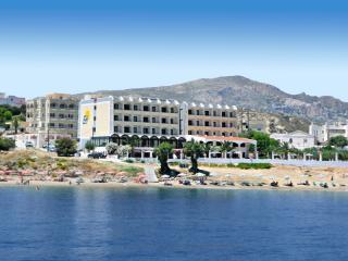 Fekvése: a 3 csillagos szálloda közvetlenül a homokos tengerparton fekszik, Pigadia üdülőhelyen, a központtól 500 méterre helyezkedik el. Menetrendszerinti buszmegálló 100 méterre, a repülőtér 17 km-re található.