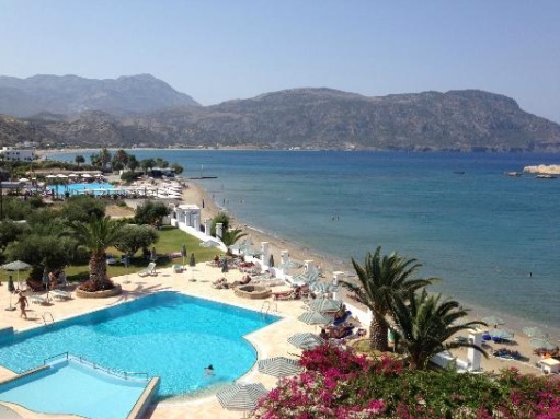 Fekvése: a 3 csillagos szálloda közvetlenül a homokos tengerparton fekszik, Pigadia üdülőhelyen, a központtól 1,5 km-re helyezkedik el. A családias hangulatú hotel szépen gondozott kertben található, egzotikus növényekkel, fákkal, virágokkal körülvéve. A tulajdonos tavernájában kellemesen elődőzhetünk. A közvetlen közelben az Agia Fotini kora keresztény templom romjait, ásatási területét fedezhetjük fel. Menetrendszerinti buszmegálló 300 méterre.