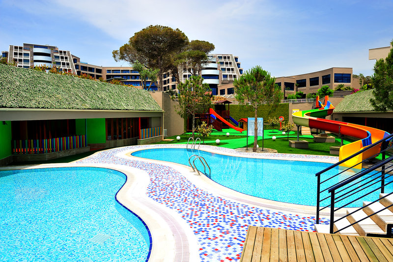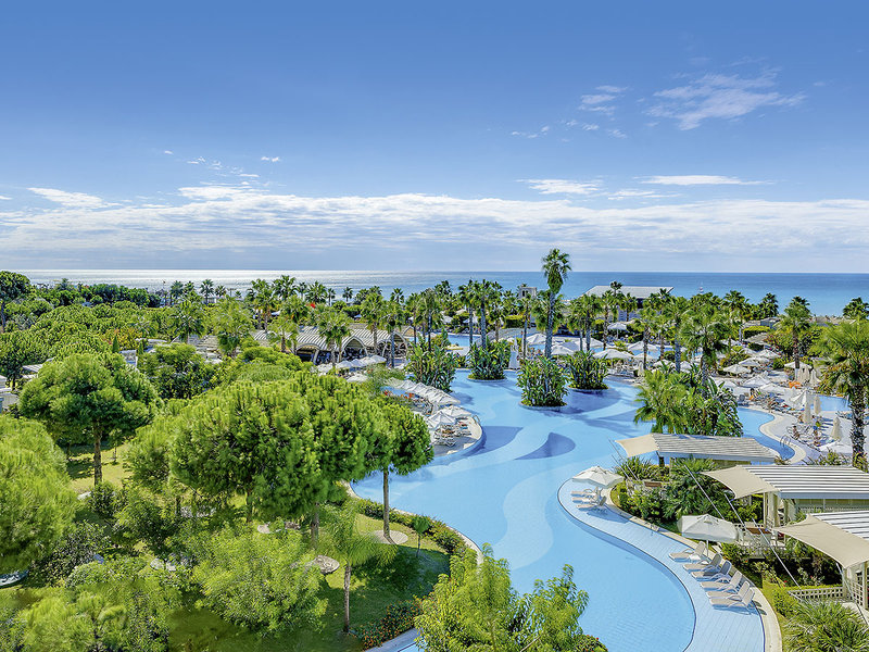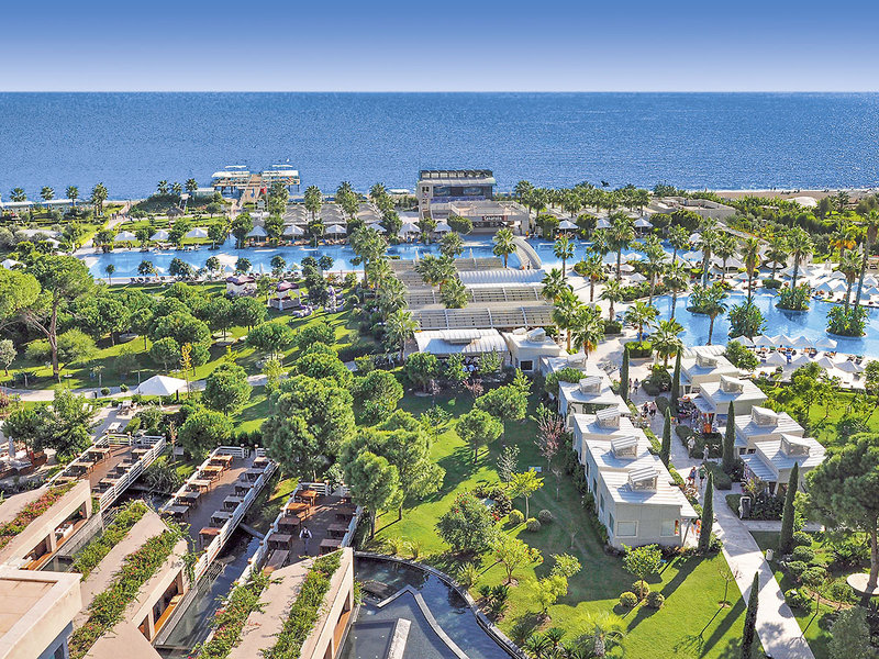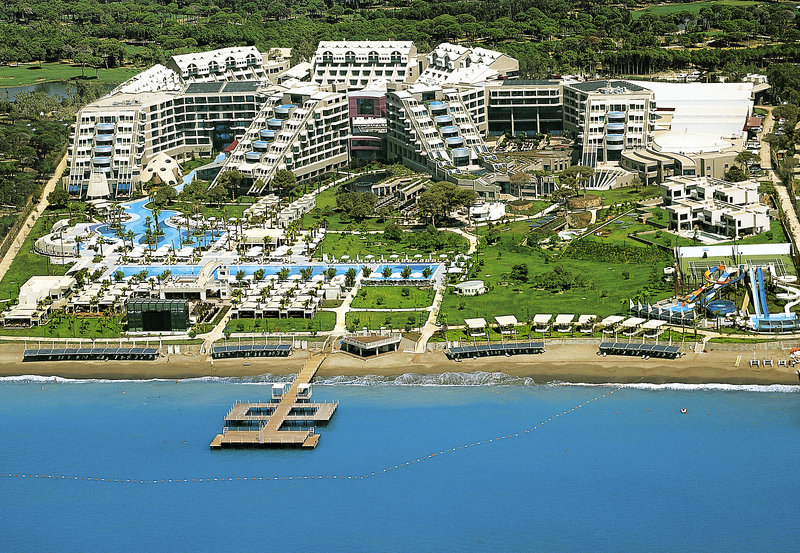 Fekvése: az 5 csillagos luxusszálloda a a közvetlenül a homokos-kavicsos tengerparton fekszik, gyönyörű, pálmafás kertben, hatalamas területen, Belek üdülőhelyen, a központtól 1 km-re helyezkedik el. Az elegáns hotel, minden igényt kielégítő szolgáltatásaival a legmagasabb elvárásoknak is megfelel. Az antalyai repülőtér 35 km távolságra.