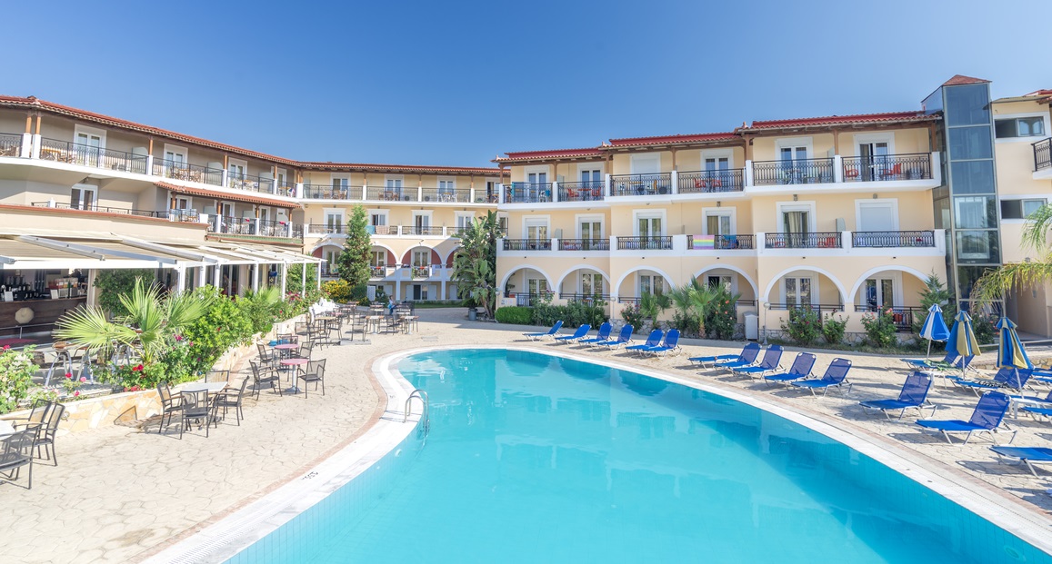 Fekvése: a modern 4 csillagos szálloda a homokos tengerparttól 400 méterre fekszik, Laganas üdülőhelyen, szép, gondozott kertben, a központban helyezkedik el. Pár perces sétára éttermek, bárok, bevásárlási és szórakozási lehetőségek. Menetrendszerinti buszmegálló a hotel előtt, Zakynthos város 3 km, repülőtér 5 km távolságra.