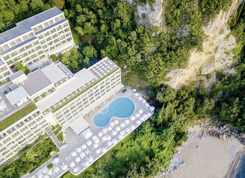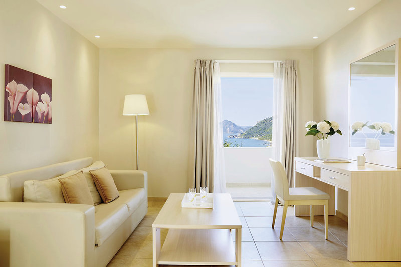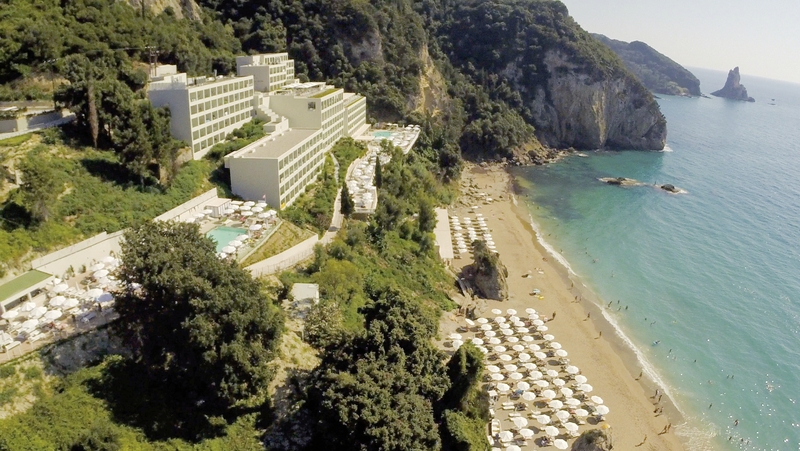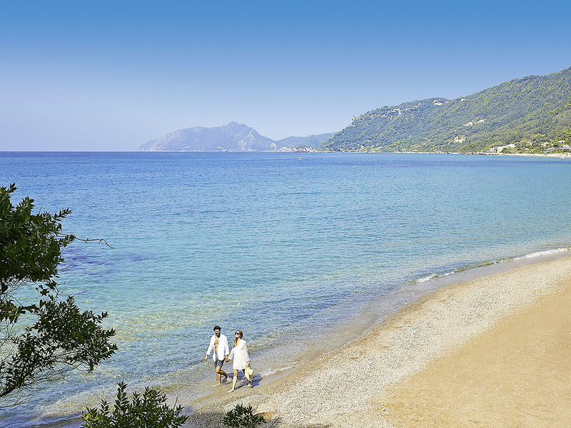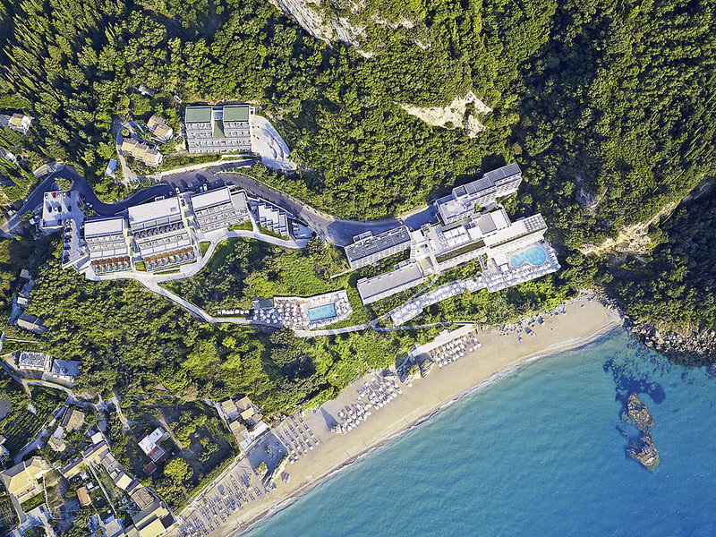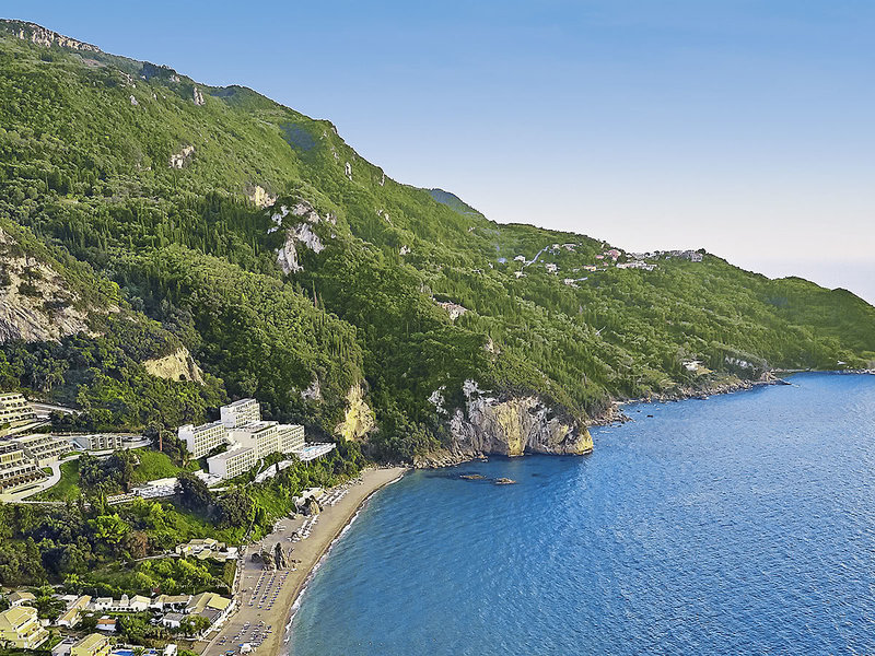 Fekvése: az 5 csillagos szálloda közvetlenül a finomhomokos és egy részén, sziklás tengerparton fekszik, Agios Gordios üdülőhelyen, központtól 150 méterre helyezkedik el. Korfu város és a repülőtár 18 km távolságra. A szálloda kizárólag 18 év feletti vendégeket fogad.