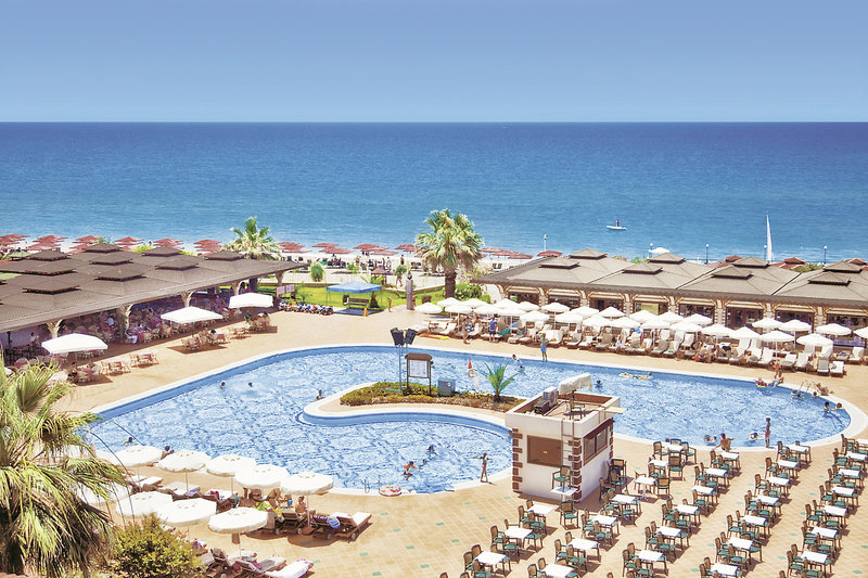 Fekvése: az 5 csillagos török építészeti stílusban épült klubszálloda közvetlenül a homokos tengerparton fekszik, nagy területen helyezkedik el. Manavgat 13 km-re, Side 18 km-re, az antalyai repülőtér 86 km-re található. A klubhotel a kényeztetés, szórakozás, kikapcsolódás és a sportolás teljes palettájával várja az ide látogatókat.