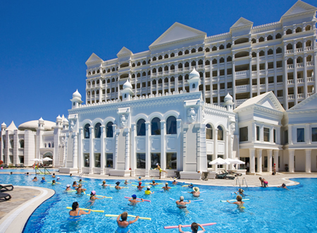 Felszereltség: 24 órás recepció, lift, lobby bár, tévészoba, 2 úszómedence, elkülönített gyermekrésszel, Aquapark, vízicsúszdák, medencebár, a napozóteraszon és a tengerparton a napernyők, napozóágyak, strandtörölközők ingyenesen vehetők igénybe, büféétterem, 5 a'la carte étterem (török, olasz, kínai, barbeque, tenger gyümölcsei), parti bár, wellness központ, szauna, jacuzzi, gőzfürdő, törökfürdő, 9 masszázsterem, VIP masszázs szoba jacuzzival, fodrászat, mosoda, gyermekfelügyelet, orvosi szolgálat, ajándélüzlet, ékszerbolt, szupermarket, internetezési lehetőség, pénzváltó, autóbérlés, parkoló.
