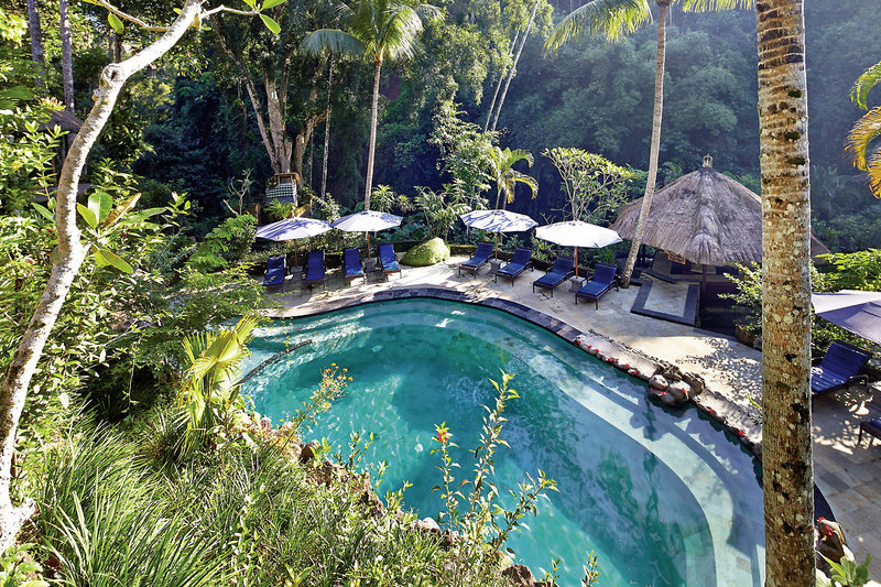 Fekvése: a 4 csillagos szálloda a festői Ubud faluban, a Tjampuhan-folyó partjánál fekszik, egy szép, trópusi kertben helyezkedik el. Nagy múltú hotel egy hegyoldalon helyezkedik el, festői kilátással a völgyre. A kézművesfalu, Ubud központja 10 perces sétával érhető el, ahova a rendszeresen közlekedő, ingyenes hotelbusszal is el lehet jutni. A történelmi emlékekben gazdag és a természetbe harmonikusan illeszkedő szállodát Ubud hercege 1928-ban alapította. A busztranszfer a repülőtérről 45 perc.