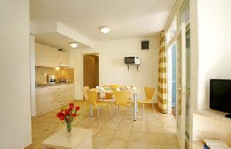 4 fős apartman: 45 nm - 2 ágyas hálószoba, nappali 2 ággyal, konyhasarok, fürdőszoba, balkon vagy terasz.