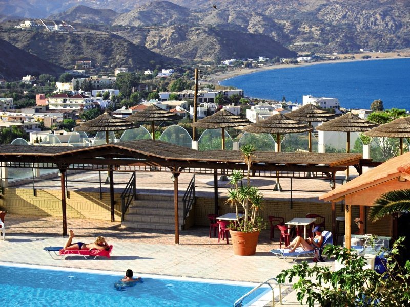 Fekvése: a 3 csillagos szálloda a homokos tengerparttól 350 méterre fekszik, Pigadia üdülőhelyen, szép zöld környezetben, csendes helyen, a központtól 500 méterre helyezkedik el.