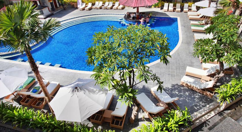 Fekvése: a 4 csillagos szállodát csak egy út választja el a tengerparttól, Legian Beach-en található, ahol a legszebb a naplemente. A hotel nyugodt környezetben helyezkedik el, de mégis közel Kuta és Seminyak bevásárló negyedeihez és a nemzetközi repülőtérhez.