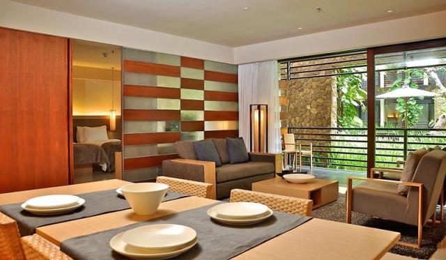Privát pool villa: 1 hálószobás, a hagyományos balinéz stílusban berendezett villákhoz privát úszómedence, 2 ágyas hálószoba, nyitott nappali, nyitott fürdőszoba jacuzzival, házimozi.