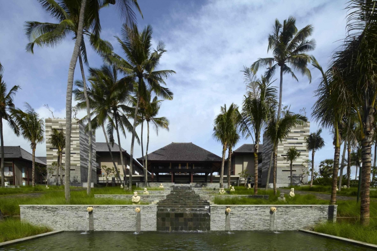 Fekvése: A 7 hektáros trópusi kert által övezett tengerparti hotel nagyszerű kombinációja a modern és hagyományos balinéz építészeti kultúrának. A 428 szobával rendelkező komplexum két- és négyszintes épületekből áll, amelyekben különböző kategóriájú elhelyezésre van lehetőség (felár ellenében).